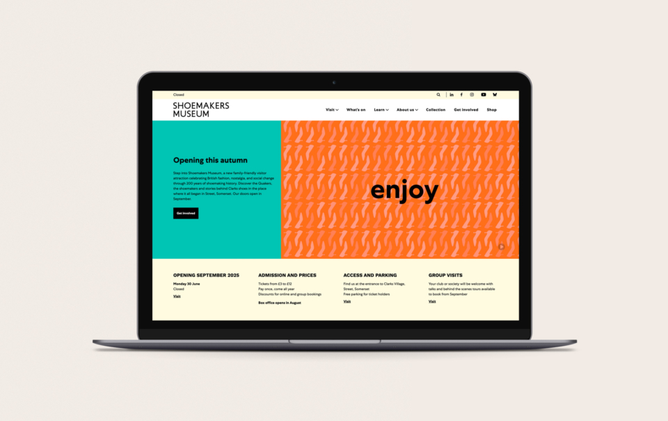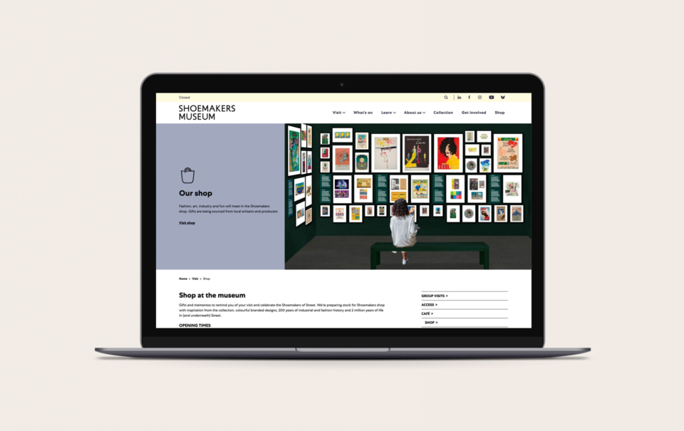 Lisa worked closely with the team at Shoemakers Museum to develop the design and workflow of the site in order to create an exciting experience that will inspire visitors to book tickets as the opening day approaches. Visually, we hope that visiting the site, and ultimately the museum, will deliver a large dose of nostalgia for many as they discover a remarkable collection of over 100,000 objects.